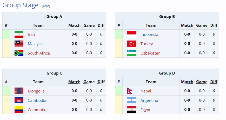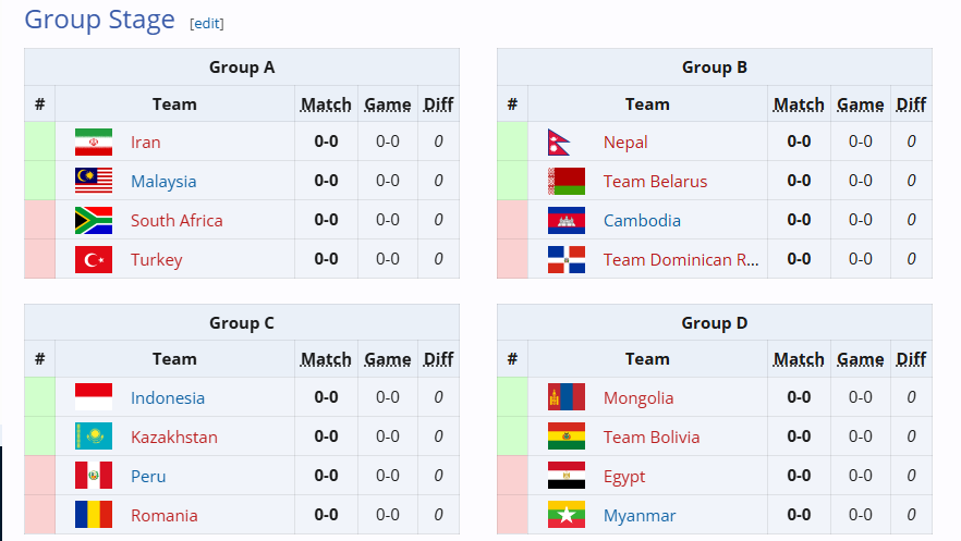 នៅ​ជុំ​ចុង​ក្រោយ​មានក្រុម​ជម្រើស​ជាតិ ១៦ ក្រុម​​ដែល​សុទ្ធតែ​ក្រុម​ខ្លាំង​ជ្រើស​រើស​មក​ពី​គ្រប់​តំបន់។ ក្រុម​ទាំង ១៦ ត្រូវ​បាន​បែង​ចែក​ជា ៤ ពូល ហើយ​ក្នុង​ ១ ពូល​មាន ៤​ក្រុម។ ក្រុម​បុរស​កម្ពុជា ស្ថិត​នៅ​ពូល B ជា​មួយ នេប៉ាល់ បេឡារុស្ស និង ដូមីនិក។